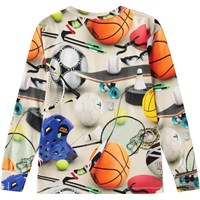 Multicoloured top in organic cotton with long sleeves, ribbed cuffs and ribbed neckline. The top has a regular fit and an all-over print, inspired by the idea of the Olympic Games as one big playground where you can experiment with all the sports you desire. The print showcases all the sports equipment you can imagine and encourages you to get started and have fun!