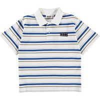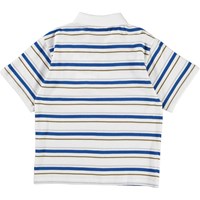 Rilloz is a white polo t-shirt with a white collar and stripes in blue, brown and grey.