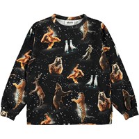 Rin is a long sleeve black top with a print of various partying aninals. The bear, penguins, tiger, monkeys and many other animals are dancing their hearts out.