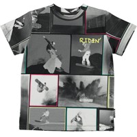 Road is a grey t-shirt with a print of a snowboarder and the text 'Riding' on the chest..
