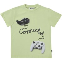 Roxo is a green t-shirt with two attached controllers. The wire between them spells out "Connected".
