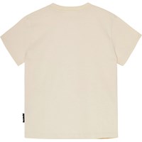 Off-white T-shirt in organic cotton with short sleeves, a round neckline, and ribbed trim at the neck. It has a regular fit and a placement print on the front. The print shows a rhinoceros on the savannah at sunset. It may be looking for a little snack.