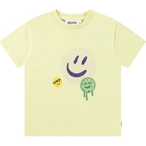 Yellow T-shirt in organic cotton with short sleeves and ribbed neckline. The T-shirt has a loose fit and a front print of smiling faces.