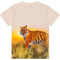 Roxo is a t-shirt in 100% organic cotton with a placement print on the front in shades of beige and orange. The front print shoes a tiger in the early evening, hunting for a night time snack. Maybe the tiger should just eat a carrot? Roxo has a round neck with an edge tape and is in a regular fit.