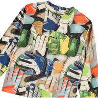Long-sleeved top in organic cotton with ribbed trim on the neckline and sleeves. The top has a loose fit and an all-over print of colourful goalkeeper gloves.
