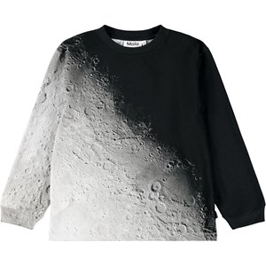 Black, grey, and beige long-sleeved top made of organic cotton with ribbed neckline and sleeves. The long-sleeved top has a loose fit with a print of the moon''s raw texture.