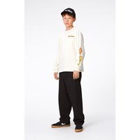 Rube is an off-white top in 100% organic cotton with an orange and yellow placement print on the sleeves and front. The print sizzles and consists of the words "On Fire", written with flaming letters, in a small print, on the front and a large print up the sleeves in gradiant colours from orange to yellow. Rube has a rib edge at the round neck and sleeves and is in a loose fit.
