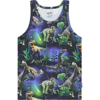 2-pack of tank tops with wide straps and round neck made of soft organic cotton. The pack includes one dark blue and one with a dinosaur print. Combine this with the matching boxer shorts for a complete set.
