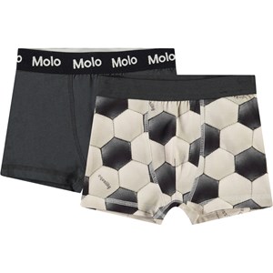 2-pack of boxer shorts in soft organic cotton. The pack includes a pair of black boxer shorts and a pair with a football print.