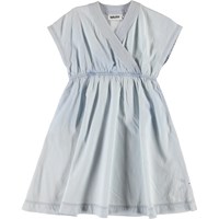 Caisi is a light coloured denim dress with a wide sleeve opening and a kimono-inspired neck.