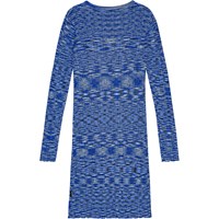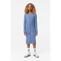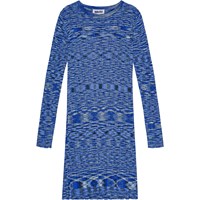 Close-fitting and stretchy dress, sewn with a mouliné effect. The dress is form-fitting, has long sleeves, raw baby lock edges, and a length that reaches to mid-calf. Mouliné threads, composed of thin twisted threads, add a varied and unique expression to the dress.