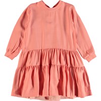 Feminine dress with long sleeves and a beautiful draped skirt. The dress has a zip closure at the neck.