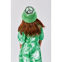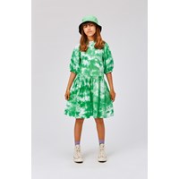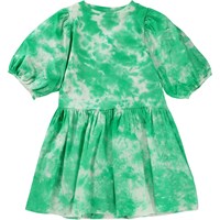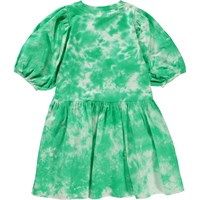 Cece is a dress in green/white tie-dye in organic cotton. The dress has a drop waist and puff sleeves with elastic at the edge. The sleeves and the skirt are constructed in cotton poplin, while the top is in organic cotton jersey. Molos tie-dye print is unique and made by hand, which means the print can vary from garment to garment.