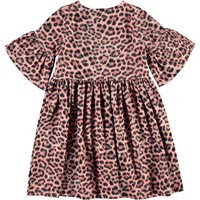 Chasity is a dress in a pink leopard print. The dress has full sleeves that give it a beautiful silhouette.