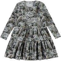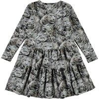 Chia is a dress with a snow leopard print. It has long sleeves and is in a loose, comfortable fit.