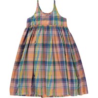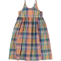 Chrissie is a long dress in a multi-coloured Madras plaid in 100% cotton. The dress has an empire waist and straps. It's in a comfortable, loose fit. The dress has a full, gathered skirt.