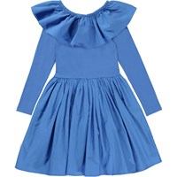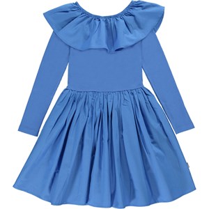 Cille is a blue, 'one of a kind' dress that's both comfortable and looks great. The dress has a skirt, a top in a rib quality and a large, full collar.