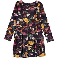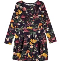 Cindarell is a long sleeve dark blue dress with a print of various berries, flowers and colourful leaves. The dress has long sleeves and a shapely fit without being too tight.