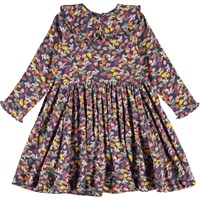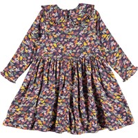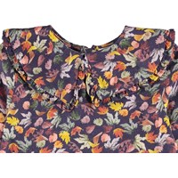 Coco is a purple dress with a print of leaves in beautiful colours. The dress has a beautiful large collar and a zip closure at the neck.