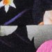 Black long-sleeved dress in stretchy organic cotton with a round neckline, fitted sleeves, and bodice. The skirt is loose and reaches mid-knee. The dress is easy to put on and comfortable to wear. It features a print of colourful flowers in vibrant shades, which stand out beautifully against the black background.