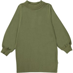 Corvina is a moss green, knee length sweatshirt dress. The dress is in a loose fit and has rib at the neck and sleeves.