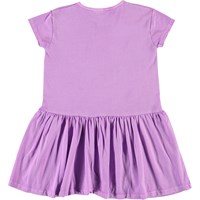 Cressida is a short sleeve purple dress. The dress is in an oversized fit with a heart print on the front.
