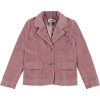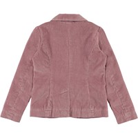 Harrietta is a pink corduroy jacket with lapel and a button closure on the front. Wear the jacket with the matching trousers.