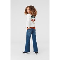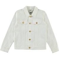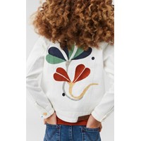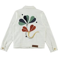 Hattie is a white denim jacket with embroidery on the back. It has gold coloured buttons on the front.