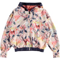 Ophelia is a roomy sports jacket in light rose with a floral print. The jacket has a zip closure and a hood as well as blue edge tape with text. The jacket is part of Molo's new sports collection, which helps integrate sports and fashion. Wear Ophelia with one of the matching styles from Molo's sports collection for a complete, cool look. Molo’s sports collection is created with a unique, high performance technology called HeiQ Smart Temp, which supports the body's own ability to cool down. The cool down function is activated when the body gets warm and sweaty, and then turns off when the body has cooled down. HeiQ Smart Temp ensures optimal comfort and performance. It has been independently tested to ensure that it is safe for the skin.