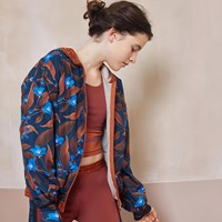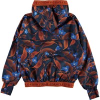 Ophelia is an airy sports jacket in a dark blue with a print of brown leaves and blue flowers. The jacket has a zip closure, a hood and a brown edge tape with text. The jacket is a part of Molo's sports collection, which seamlessly unites fashion and sports. Wear the it with one of Molo's other styles for a complete, sporty look. Molo’s sports collection is made with a unique, high-performance technology called HeiQ Smart Temp, which supports the body’s natural ability to cool itself down. The cooling function is activated when you are warm and sweating. The cooling function becomes deactivated when the body has cooled down. HeiQ Smart Temp ensures optimal performance and comfort. Independently tested for skin safety.