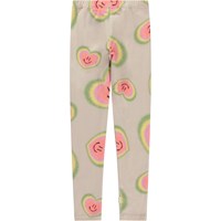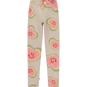 Beige leggings in an all over aura heart print. Imagine that everything has an aura- people, plants and animals. The print is of aura hearts that are glowing with colours, smiles and love. Aura colours are like the colours of the rainbow and reflect the feelings of our inner spirit. We are willing to open our hearts to all the things we cannot see and believe that there is more to life than what our eyes can see. These leggings are in 100% cotton, have elastic at the waist and are in a slim fit.