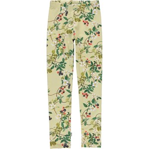 Molo's classic long leggings in light green with a print of blackberry vines. They are constructed in a stretchy cotton blend, and the elastic waist ensures a good fit.