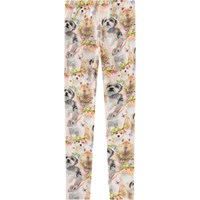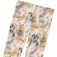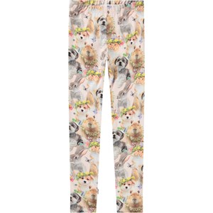 Pink leggings in stretchy organic cotton with an elastic waistband. The soft leggings are snug-fitting with an all-over print of cute animals wearing flower crowns on their heads.
