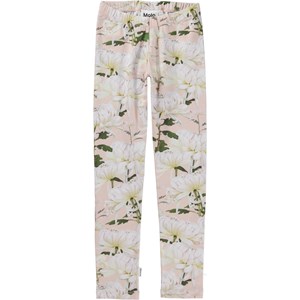 One of Molo's most popular styles! Niki is a pair of pink leggings with elastic at the waist in organic cotton jersey. Niki is in the all over Flowery print with large, beautiful white flowers.