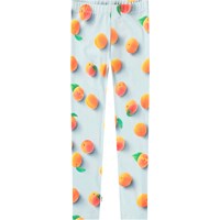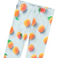 Light blue leggings in stretchy organic cotton with an elastic waistband. The soft leggings are snug-fitting with an all-over print of ripe apricots.
