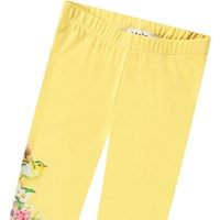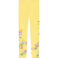 Yellow leggings in stretchy organic cotton with an elastic waistband. The soft leggings are snug-fitting with a print of colourful summer flowers and a bird.