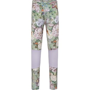 Olympia is a pair of leggings in light green with a floral print and light purple details at the knees. These leggings ensure perfect comfort and flexibility, while allowing for full, unrestricted movement. Olympia is a part of Molo's new sports collection, which seamlessly unites fashion and sports. Wear the Olympia leggings with one of Molo's tops for a complete, sporty look. Molo’s sports collection is made with a unique, high-performance technology called HeiQ Smart Temp, which supports the body’s natural ability to cool itself down. The cooling function is activated when you are warm and sweating. The cooling function becomes deactivated when the body has cooled down. HeiQ Smart Temp ensures optimal performance and comfort. Independently tested for skin safety.