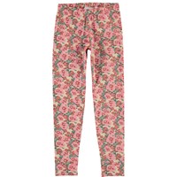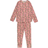 Nightwear set, in two, parts in beige with a pink floral print. The top is long sleeved and has eyes and ears. The bottoms have ties at the waist.
