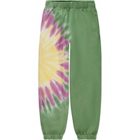 Green joggers with a placement tie-dye print in yellow and purple on one leg. These joggers are in 100% cotton, have elastic and inner ties at the waist, a back pocket, elastic at the ankles and are in a regular fit. Wear these joggers with the matching sweatshirt, Monti, in the same print for a super cool set.
