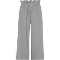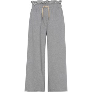 Addison is a pair of comfortable sweatpants in grey. They are in a relaxed, extra wide fit with an elastic waist with ties.