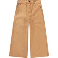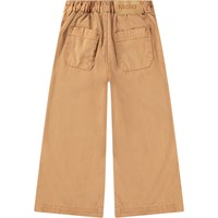 Brown 70s trousers with a zip and snap button closure. The trousers have plenty of room and stitched pockets on the front and back. There is elastic at the back, making them comfortable to wear and ensuring a good fit.