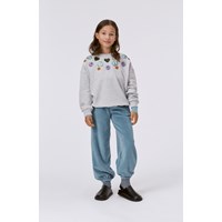Light blue velour joggers in a soft cotton/polyester blend. They have elastic at the waist and at the ankles and pockets at the sides. They are in a loose fit. Wear them with the Madeleine hoodie in the same colour and material for a cute set.