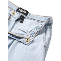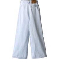 Wide dark blue denim jeans with front pockets, back pocket, and a large pleat at the front for a boxy look. They have an adjustable waist with belt loops, button and zip fastening. The smallest sizes (92–134) have a press stud, while sizes 140–176 have a classic jeans button.