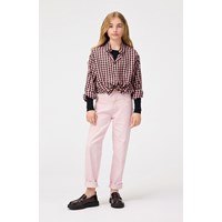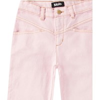 Pink denim jeans with copper stitching. These jeans feature delicate stitching on the front and two side pockets.The waistband of the jeans can be adjusted with an internal elastic, ensuring a perfect fit for all children. Sizes 92-134 have a snap button, making it easy to take the pants on and off, while sizes 140-176 have a regular jeans button.