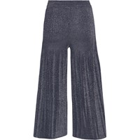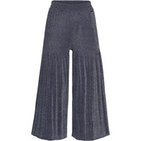 Dark blue trousers with pleats and glitter. These trousers remind you of a magical, star-speckled night sky. They are in a polyamide blend that makes the pleats possible. They have an elastic waist, wide pleats from the thighs to the ankles, wide legs, and they are in a loose fit. Wear them with the matching Geneen top in the same colour and fabric for a magical look.