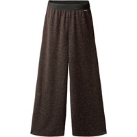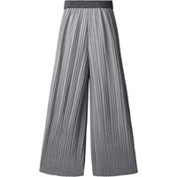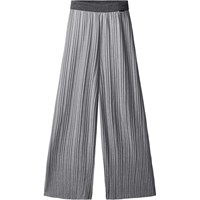 Grey pleated pants with silver shimmer. The pants have a loose fit with wide legs and an elastic waist, also with silver shimmer.