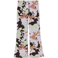 Alfreda is a pair of sweatpants with a print of horses that look like camouflage. They have a slight flare at the legs and an elastic waist with ties.