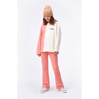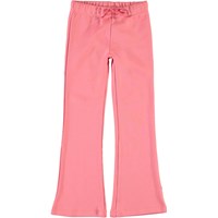 Alfreda is a pair of pink sweatpants with a slight flare in the legs. They have an elastic waist with ties.