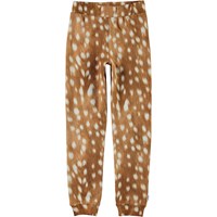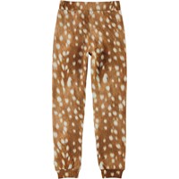Alfrida is a pair of brown sweatpants with a print with white spots that looks like the buckskin of a deer. The sweatpants have a comfortable fit and an elastic waist.