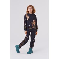 Amina is a pair of dark coloured sweatpants with a print of various berries, flowers and birds. Wear them with a matching sweatshirt.